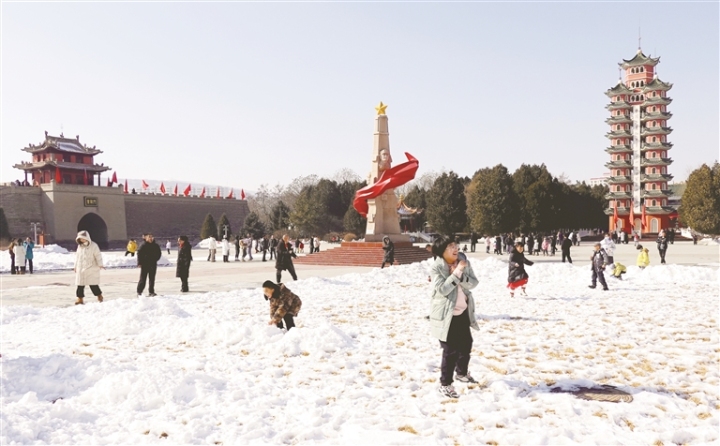 春節(jié)期間,會(huì)寧縣紅軍會(huì)寧會(huì)師舊址迎來大批游客,各地游客在會(huì)寧縣感受紅色文化,厚植家國情懷,歡度假期。圖為游客在紅軍會(huì)寧會(huì)師舊址游玩的場(chǎng)...